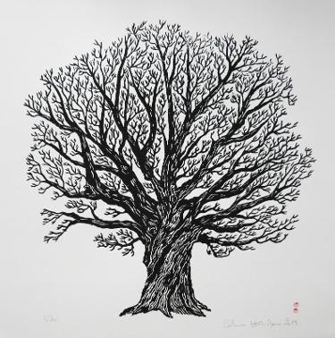Ici, linogravure à 1 pin ou 3 pins. Plus de créations encore dans l'onglet Nature/aquarelles et collages.